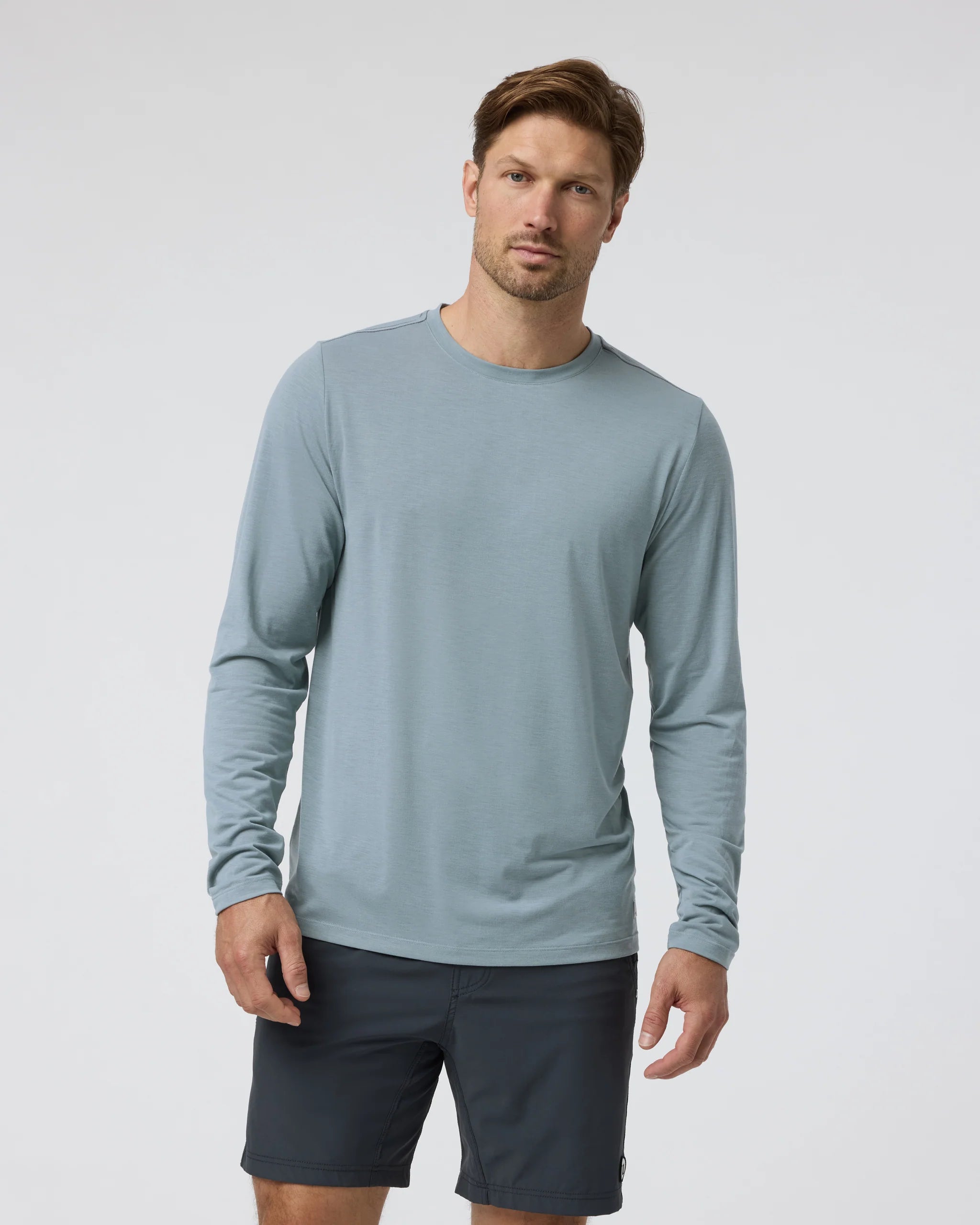 Your favorite fitted tee with all the technical performance - a long-sleeve version of one of our favorites. The Long-sleeve Current Tech Tee is made with a recycled 4-way stretch knit that wicks away moisture, keeping you cool through cardio and mountain climbs.
