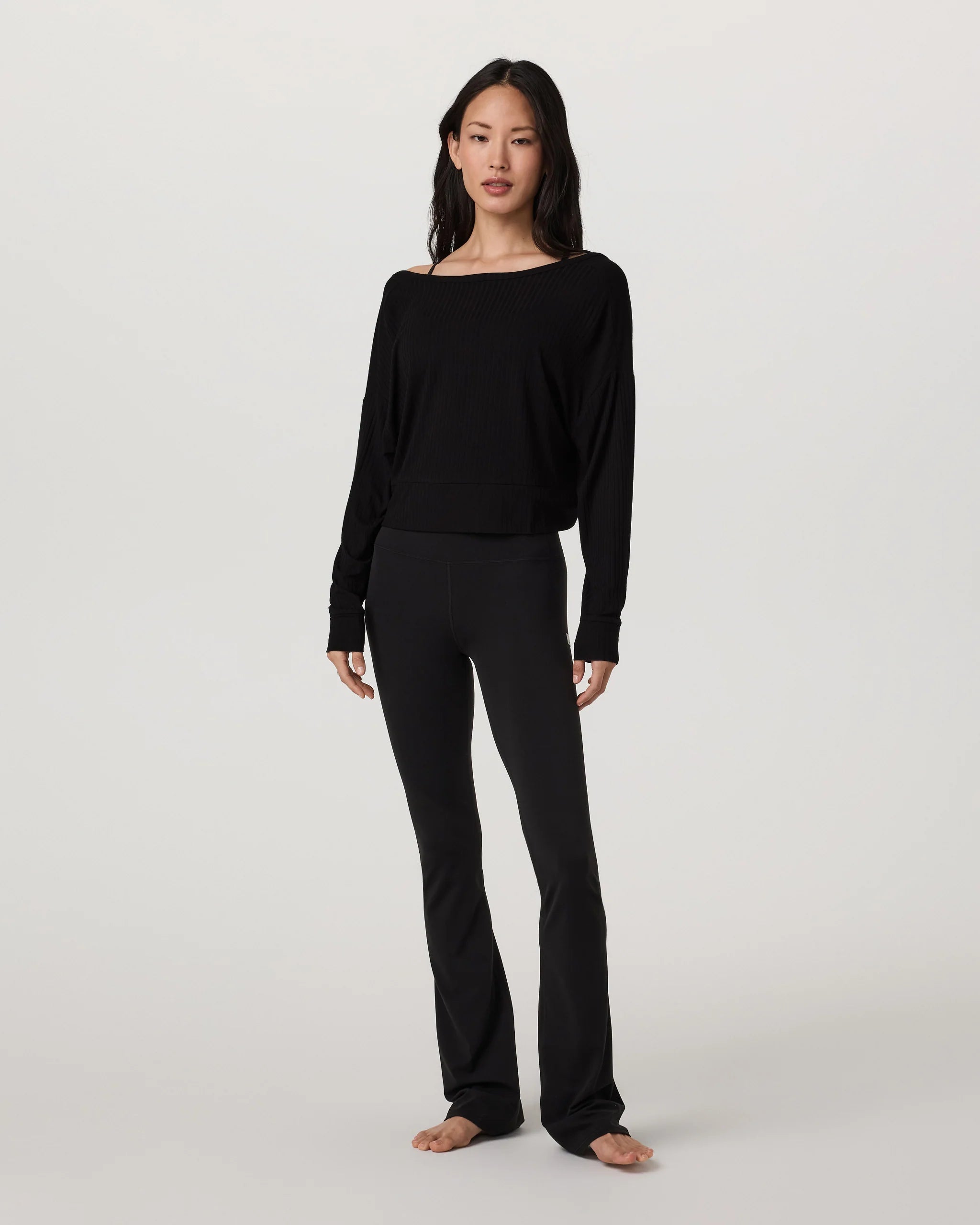 The Long Sleeve Twist Top is a lightweight layer for versatility to-and-from workout classes. Crafted with our beautifully drapey stretch rib knit, this women's top features a twisted detail that can be worn two ways.