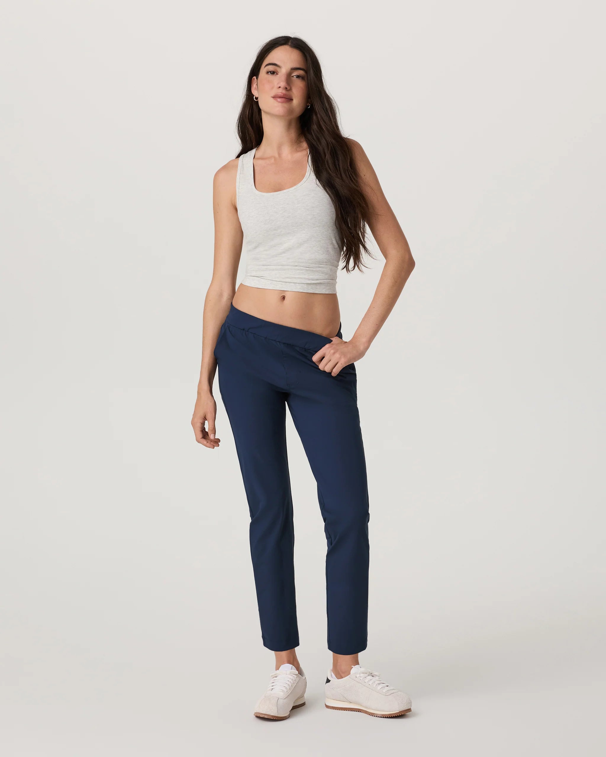 The Miles Ankle Pant offers all the necessities to accompany you on your everyday adventures. Made from a breathable 79% recycled performance stretch knit with side-seam zip pockets, you'll be comfortable and ready for anything.