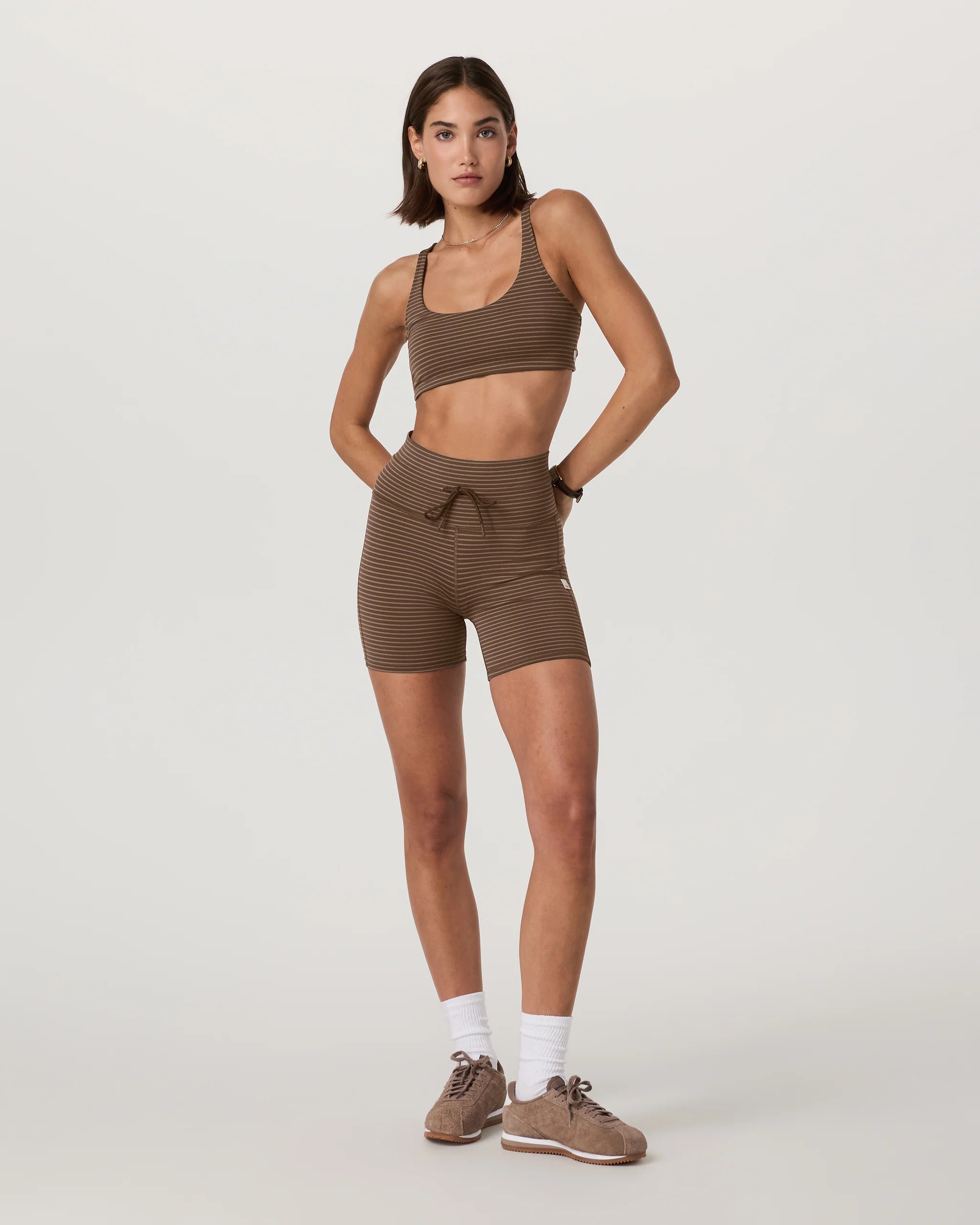 Our foundational Daily Legging takes on a new form with the Daily Short. Enjoy the same smooth high-rise, drawstring waistband and peachy-soft BreatheInterlock™ fabric that you love, now in a biker short length and a cute striped print.