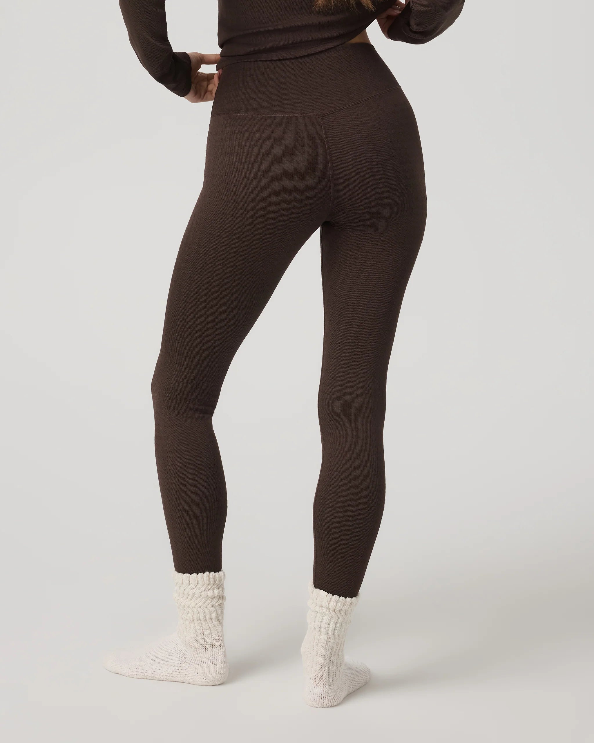 Lightly brushed and ultra-soft, we made these high-rise leggings to keep you warm on chilly days. They're made with a unique jacquard stretch knit and a flattering v-shaped seam detailing at the waist.